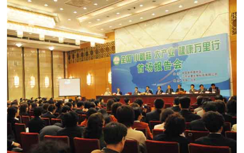 2008年4月29日,全國“小蘑菇 大產業”健康萬里行活動首場報告會在北京人民大會堂舉行。由此,健康萬里行活動拉開了序幕。